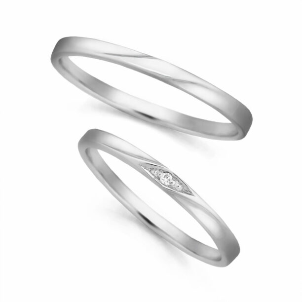 - 右(甲丸/2.0㎜幅/Pt950/メレ3石)